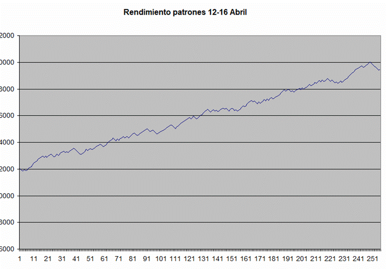 Durante el mes de Abril hemos superado ya la cifra de 13.000 muestras tomando como referencia el comportamiento del precio en base a patrones SOR. En este gráfico vemos la evolución de la última semana.