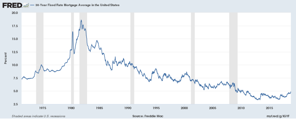 Gráfico.- Para el día de hoy traemos el repunte de los tipos de interés hipotecarios a 30 años. Rozando el 5%, y es que las subidas de tipos por parte de la FED trae consecuencias… En Europa, el Euribor ya empieza a descontar las subidas de tipos previstas para el segundo trimestre de 2019, pero aún así, permaneceremos lejísimos de ese 5% de EE.UU.