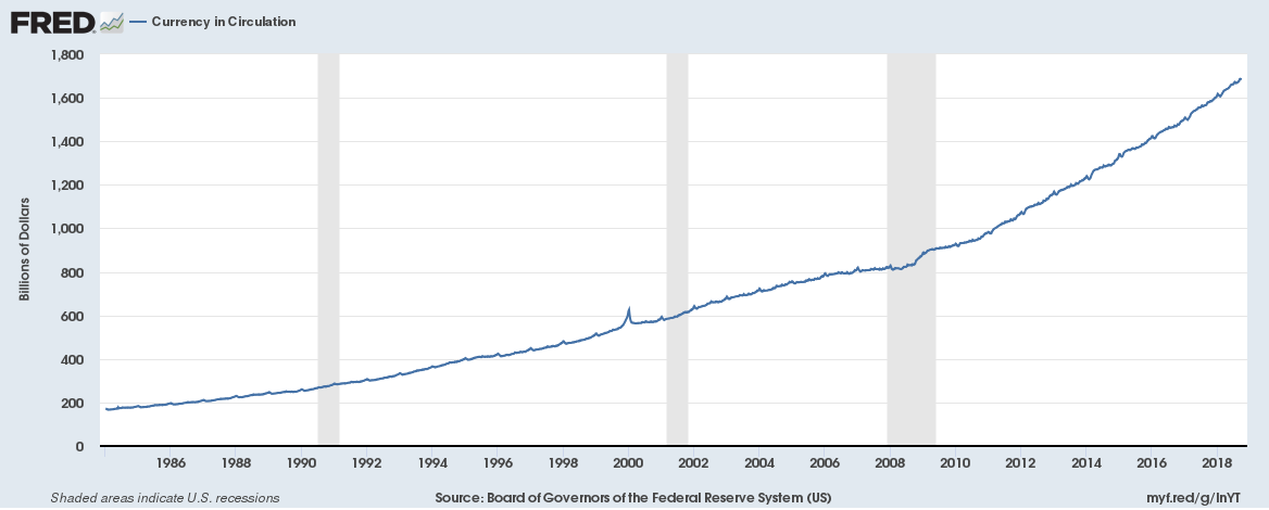 Gráfico del día. Publicado por Analista1el 23 octubre, 201823 octubre, 2018Dinero en circulación en EE.UU. La máquina de hacer billetes verdes no tiene límite. Llama la atención la inclinación que toma la curva desde el 2008 en relación al periodo anterior 2002-2008 Seguir leyendoArtículo anterior Gráfico del día.Artículo siguiente Gráfico del día.