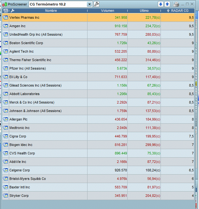 El sábado comentábamos en el Club de Bolsa la fortaleza que estaba mostrando el sector de Healthcare o cuidados de salud. Decíamos que probablemente era el que más fortaleza mostraba dentro del sectorial, hoy le hemos pasado nuestro screener «CG Termómetro» y efectivamente se pone a la cabeza en cuanto a mejor comportamiento se refiere.