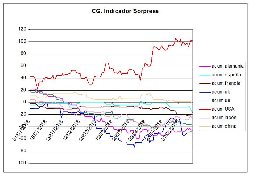 Desde luego que no será EEUU quien nos de la sorpresa en esta ocasión: sigue marcando datos por encima de lo esperado y ahora mismo es la única economia de las que seguimos que se encuentra en terreno positivo en lo que llevamos de año 2018.