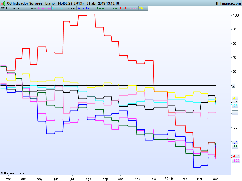 Finalizó Marzo y como cada quincena venimos a recoger el resultado de nuestro indicador de Sorpresas macro, que compara los datos realmente publicados con las expectativas de los analistas.