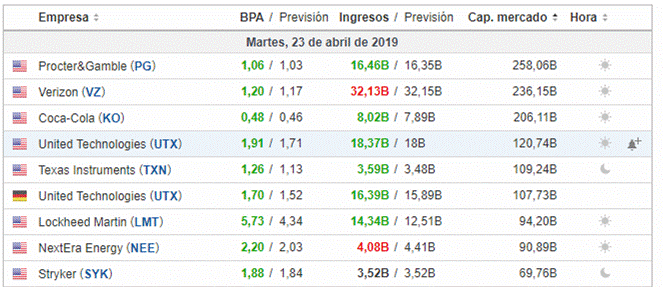 Jornada de resultados del 23/04/2019. Publicado por Julio Fdezel 24 abril, 201924 abril, 2019Estos son los resultados de las empresas de mayor capitalización que presentaron resultados en el día de ayer, 23/04/2019Fuente: investing.com Seguir leyendoArtículo anterior #Inditex en 1 minutoArtículo siguiente Facebook presenta resultados. Análisis sectorial.