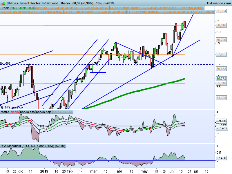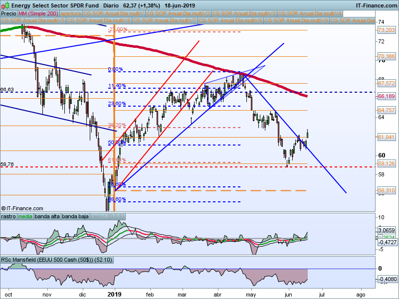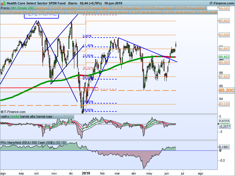 De momento sigue valiendo el soporte en el 61.8% del retroceso del impulso previo. Sigue siendo el sector más débil.