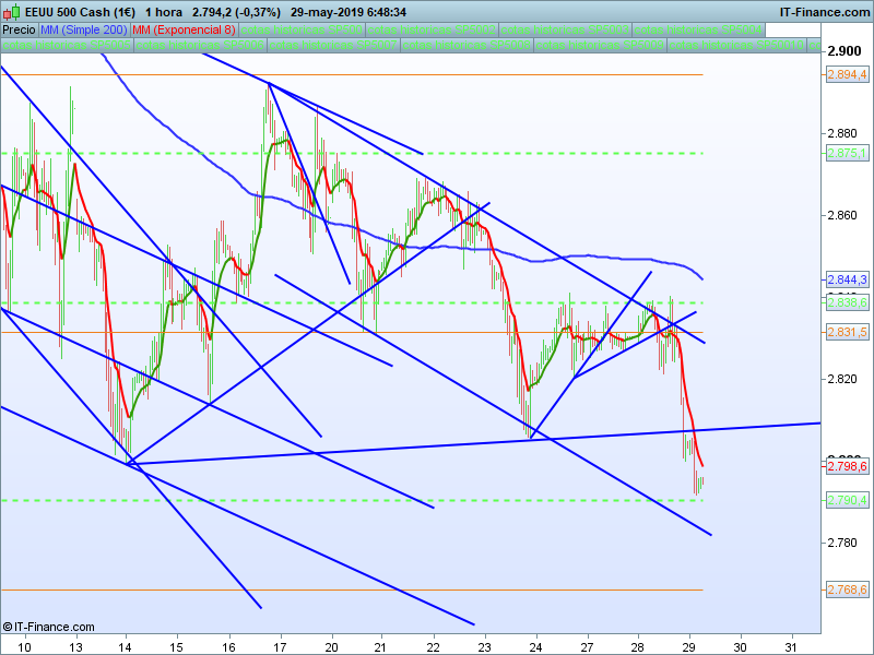 El cierre de ayer se produjo en mínimos de la sesión, durante la jornada asiática se han realizado nuevos mínimos del mes. Siguiente objetivo mientras estemos por debajo de 2831, el SOR 2768