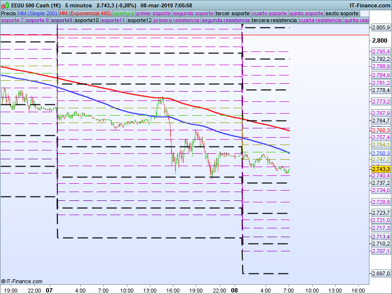 Se confirmó la pérdida del SOR 2768 y tras alcanzar el refugio 2737 nos hemos quedado lateralizando durante la sesión asiática. Si se pierde este último nivel nos tendremos que fijar en el SOR 2705