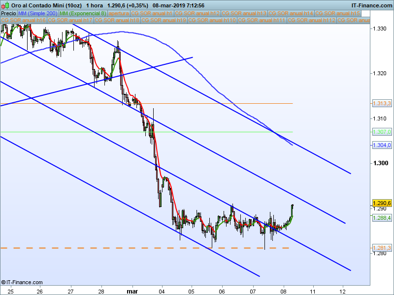 El PAA2019 está pudiendo dar soporte de momento a la cotización, es la segunda vela de rechazo que tenemos justo al llegar a esa zona. Mientras permanezca por encima podemos buscar el test al 1307-1313