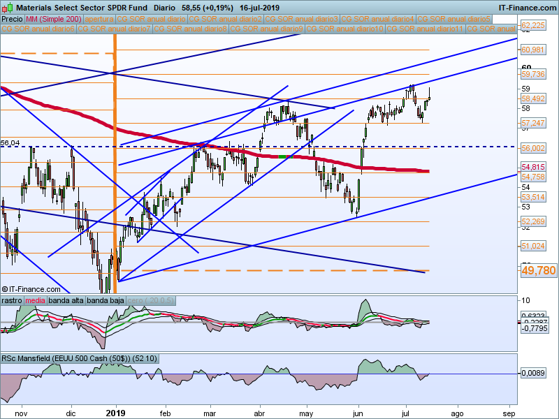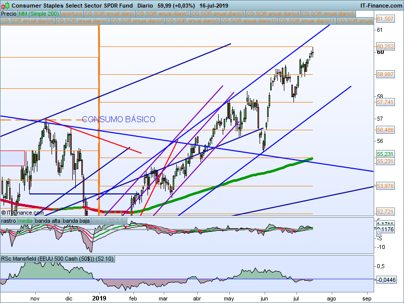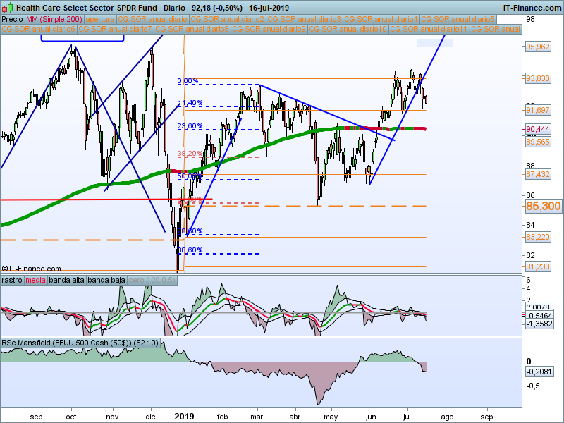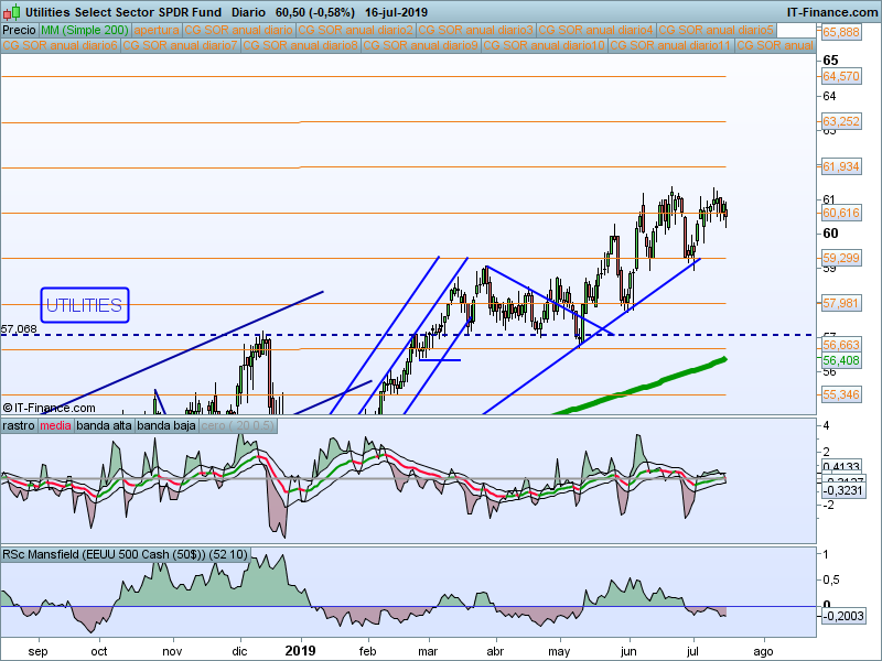 Estamos en una situación de triple techo en la zona del SOR 60.62. La estructura alcista seguirá intacta mientras estemos por encima del 59.30. El sector presenta buen aspecto pero ha perdido fuerza en el último mes.