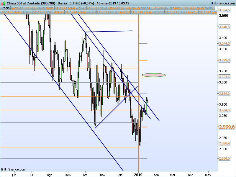 La estructura sigue siendo bajista, pese a haber perforado la parte alta del canal. Mientras estemos por debajo del SOR 3224 no tendremos rotura estructural. Cierres por debajo del PAA 2999 nos señalarán un nuevo tramo bajista
