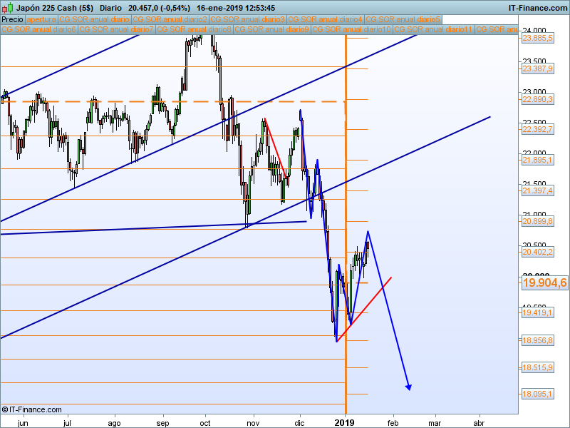 Deberíamos tener recorrido aún hasta el SOR 20899 que sería zona de solape dentro del recuento que llevamos. La pérdida del precio de apertura anual nos abre las puertas a un nuevo tramo bajista.