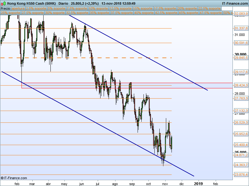Hangseng(Hong Kong).- Mientras permanezca por debajo del SOR 26529 vamos a seguir adoptando predisposición bajista.