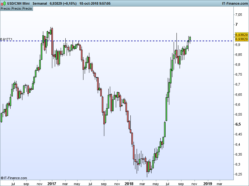 El Yuan es la única de las monedas emergentes que revisamos que incrementa su debilitamiento frente al dólar americano. De momento estamos por encima de resistencia (que pasará a convertirse en soporte en caso de confirmar).