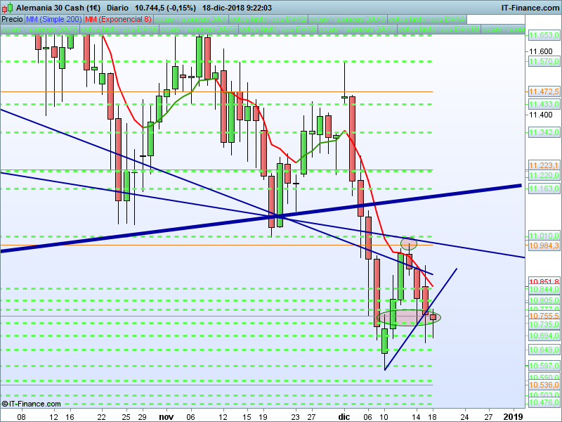 DAX Xetra,09:20:54.- Luchando por mantener los mínimos de la pasada semana. Para ello es necesario que mantengamos los cierres diarios por encima del SOR 10755, cierres por debajo nos llevan al siguiente SOR 10536