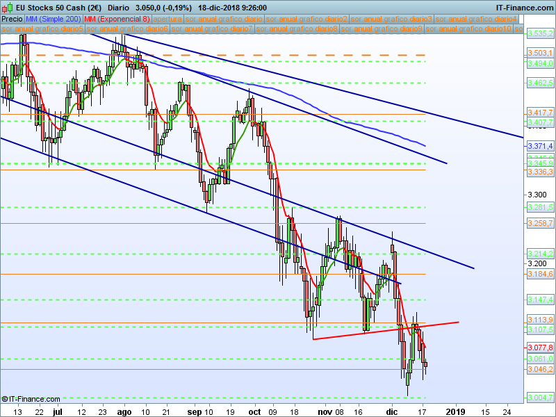 STOXX50,09:25:03.- Luchando con el SOR 3046 cuya pérdida nos lleva a mínimos y con posibilidad de ver el SOR 2981.