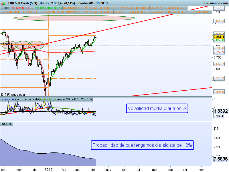 Como vemos, el SP500 tiene una volatilidad media de 1.34%, bastante menor que la necesaria para alcanzar hoy el objetivo de nuevos máximos.