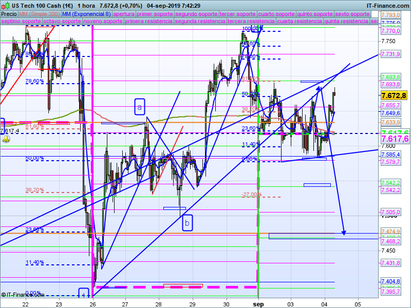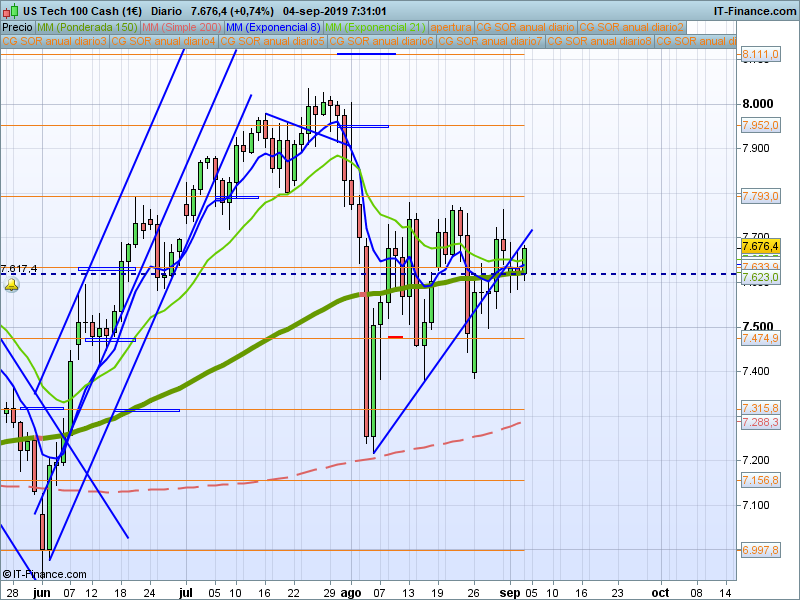 Ayer analizábamos al SP500 y hoy hacemos lo propio con el Nasdaq100. Si comentábamos que habíamos perdido el mejor recuento en el primero, el índice tecnológico sigue manteniendo de momento la estructura que nos permite seguir pensando que el siguiente movimiento será bajista. Para que se de esta circunstancia, deberían cumplirse un par de requisitos. Una, que permanezcamos por debajo del SOR anual 7634, cosa que en este momento no estamos haciendo y dos, que en caso de estar por encima de este nivel, no se superen los máximos del pasado viernes.