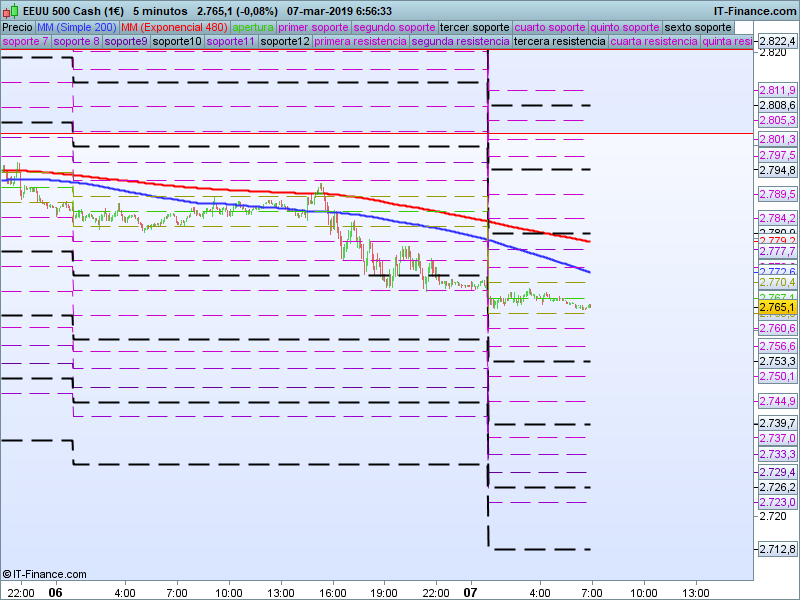 Durante la sesión asiática nos hemos colado por debajo del SOR 2768. Habrá que esperar a cuando entre volumen. Por debajo de este nivel tenemos el refugio 2737 y en extensión el SOR 2705