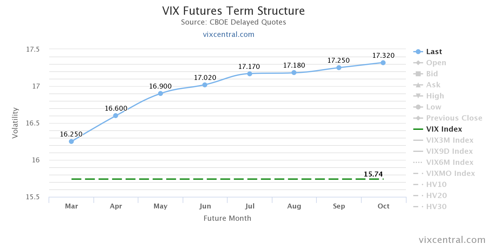 La curva de futuros del VIX sigue mostrando pendiente positiva, pero el vix se acerca de nuevo al nivel 16. Este no es nada peligroso, pero si que es una lectura por encima de la que hemos tenido en las últimas sesiones, el nivel a vigilar es el 20.