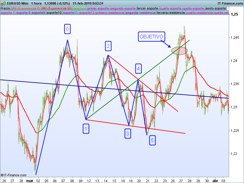 De forma gráfica quedaría de la siguiente forma en una pauta encontrada en el Eurusd: