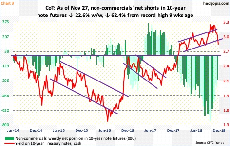 Bonos.- Tras la rotura del TBOND a 10 años del nivel psicológico del 3% en cuanto a rentabilidad se refiere vemos como las posiciones de los fondos de cobertura han reducido bastante su exposición en el lado corto. Aún así, el saldo neto que presentan sigue siendo negativo.