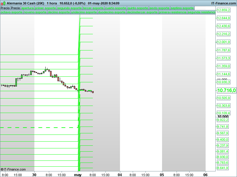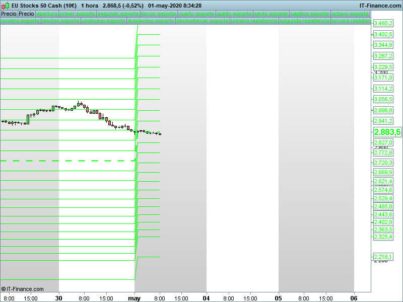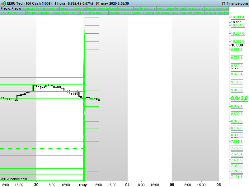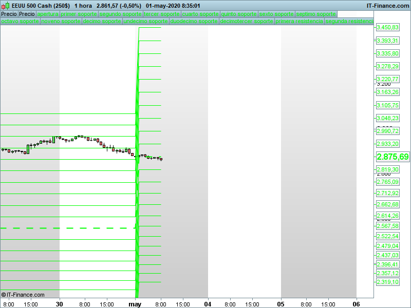 Precios de apertura y mapas de mayo para los principales índices Publicado por Julio Fdezel 1 mayo, 2020DAXStoxx50IbexSP500NASDAQDOW JONES Seguir leyendoArtículo anterior TRADING LIVE 17.30. Cierre de mes lejos de máximos, pero la estructura alcista resiste de momento.Artículo siguiente FOREX: precios de apertura mensuales y mapas de mayo para los principales cruces respecto al dólar.