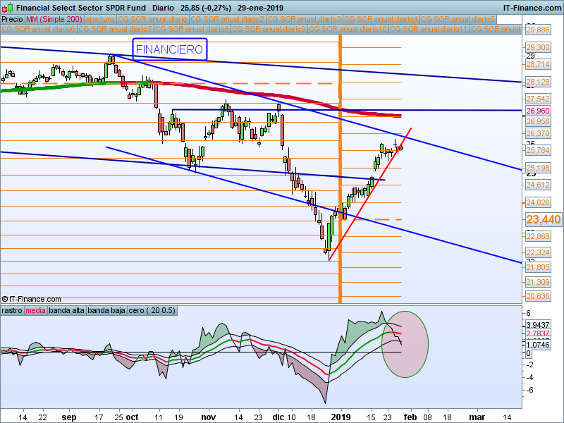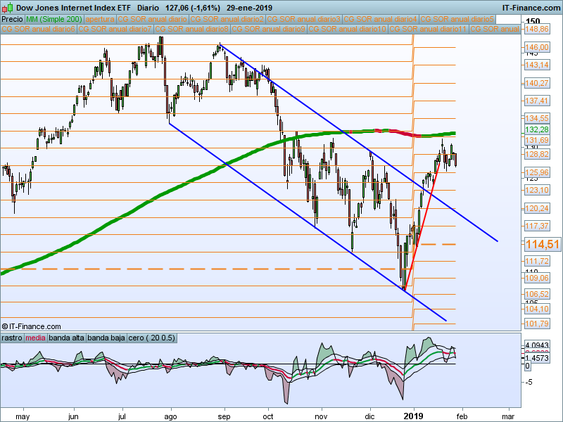 Llegamos a la temporada de resultados con el ETF pegado a su media de 200 sesiones. Del sector en particular estaremos fuera mientras estemos en esta situación. Si rompemos la media, buscaremos el test.
