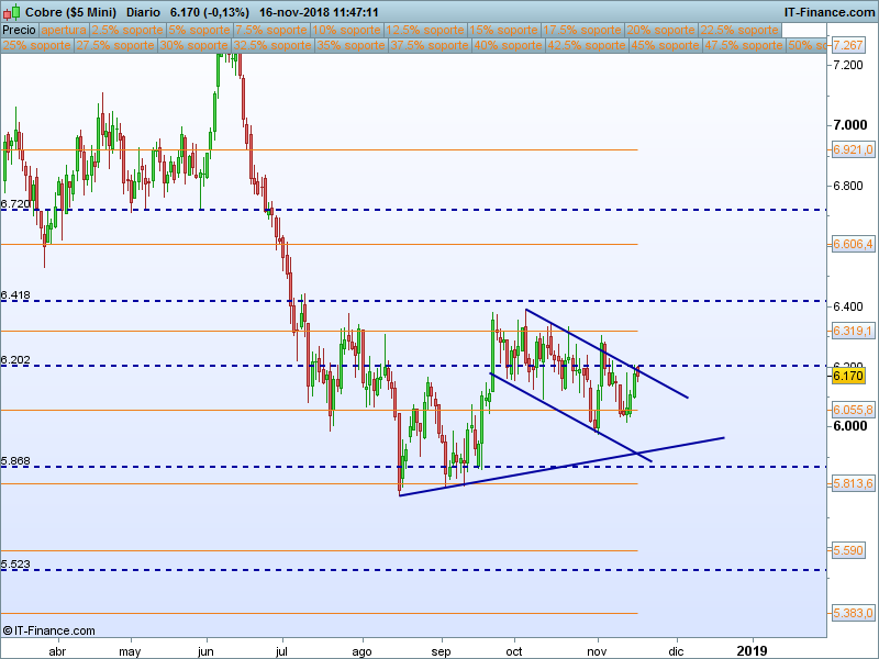 Cobre.- Hemos encontrado apoyos en el SOR 6055. Vamos a considerar como escenario más probable que continue hasta el SOR 6319, si cerramos por encima de esta última cota, tenemos la puerta abierta hasta el 6606.
