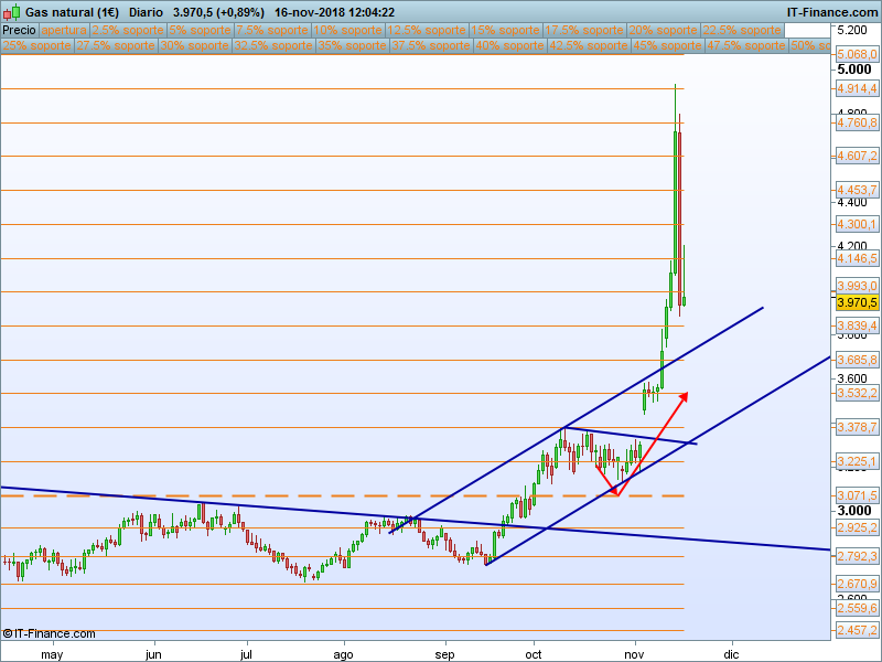 Gas Natural.- Tremenda la volatilidad de este activo en la jornada de ayer donde tuvimos datos de inventarios peores de lo previsto. Lástima que se nos escapara al no llegar a la zona esperada. Ni el bitcoin!!!