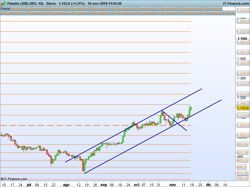 Platino.- Continuamos con el impulso alcista tras el apoyo del precio en el PAA, el objetivo es el SOR 1219.
