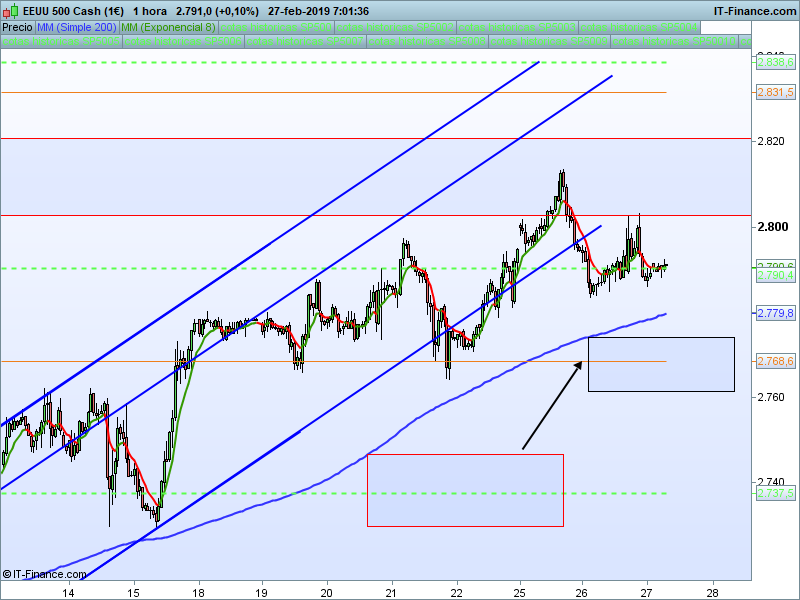 Mientras permanezcamos por encima del 2768 mantendremos la predisposición alcista, el punto de reversión a corto plazo lo subimos precisamente hasta esta cota