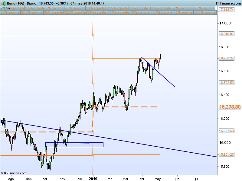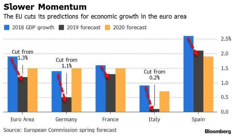 Recorte en las previsiones de crecimiento en la Eurozona Publicado por Julio Fdezel 7 mayo, 2019Los recortes en las previsiones de crecimiento se pueden ver en el siguiente gráfico de Bloomberg:A su vez, movimiento alcista en la cotización del Bund, que parece confirmar un nuevo tramo impulsivo. Seguir leyendoArtículo anterior Confusión de confusiones. Apertura de mercados.Artículo siguiente Vuelve el miedo a los mercados. Análisis de apertura.