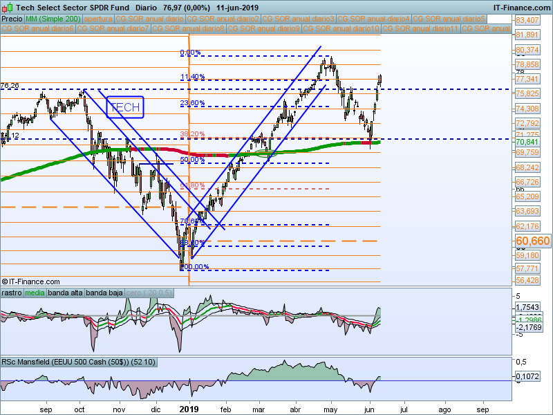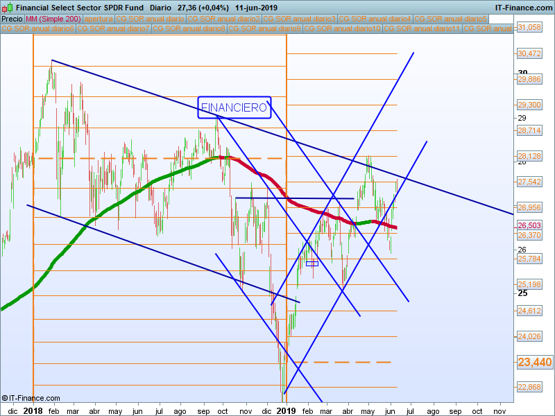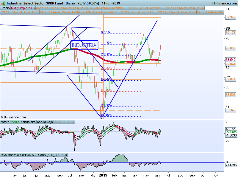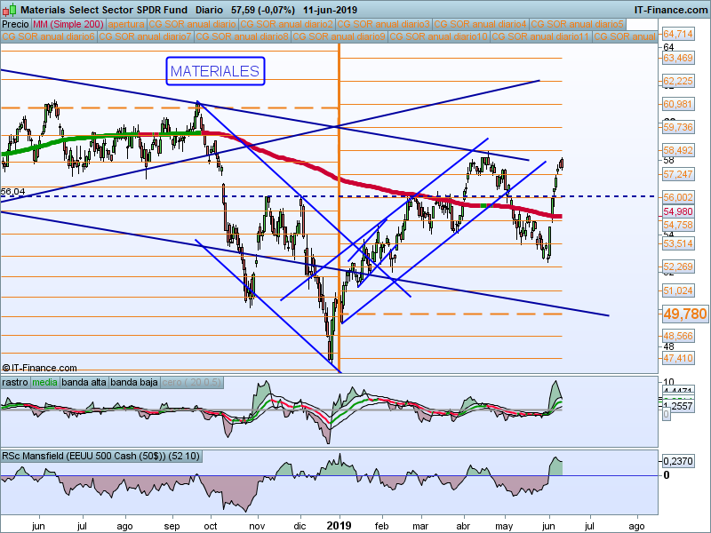 El impulso alcista de primeros de junio ha vuelto a llevar a este sector a zonas de máximos históricos. Adelantamos el punto de reversión a la zona de 58, mientras estemos por encima mantendremos predisposición alcista.
