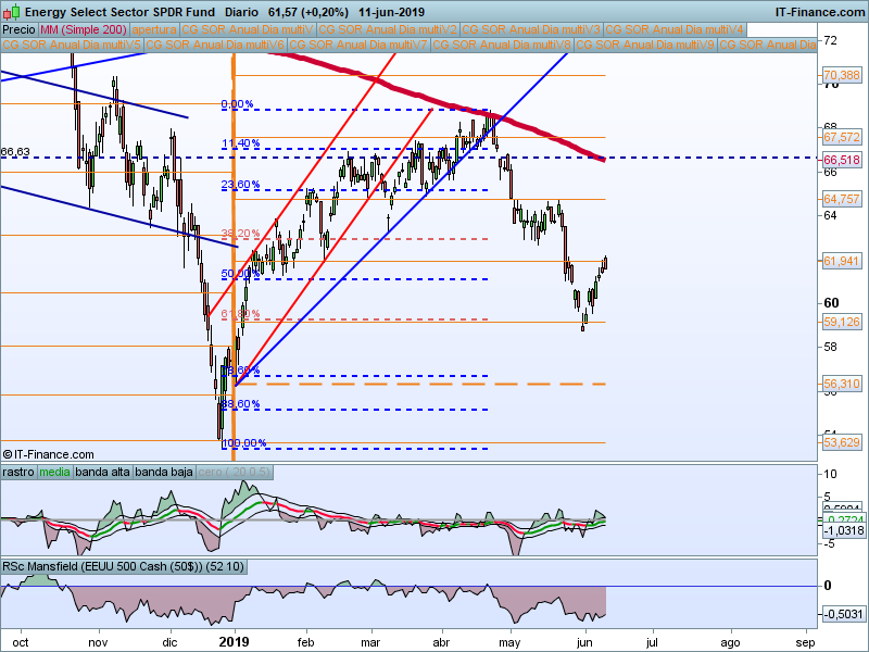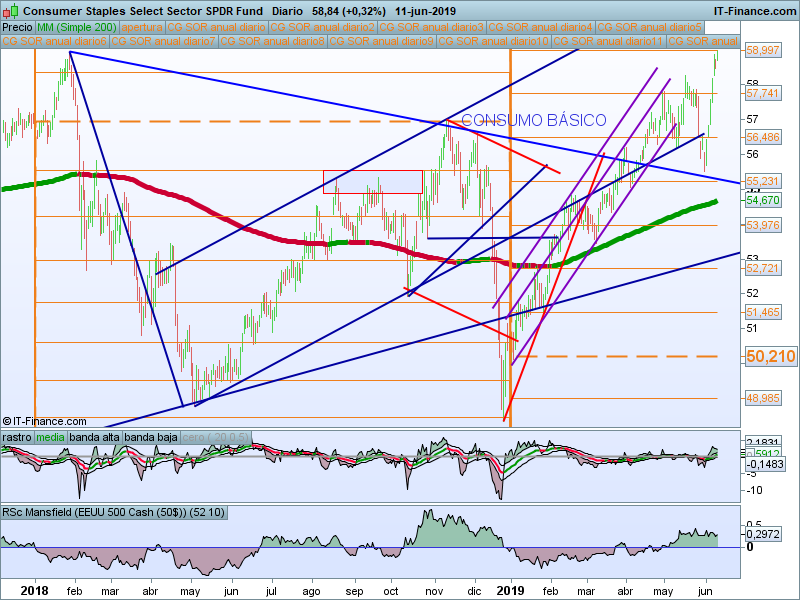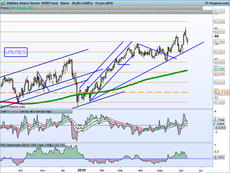 Uno de los sectores más fuertes, mientras estemos por encima de 55 podemos mantener la predisposición alcista. Por encima del SOR 58.50, el nivel de 61 es un objetivo claro