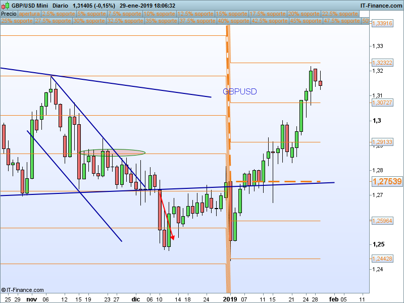 Se nos ha girado antes de llegar al objetivo 1.32322. Mientras estemos por encima de 1.30727 mantendremos predisposición alcista a corto plazo.