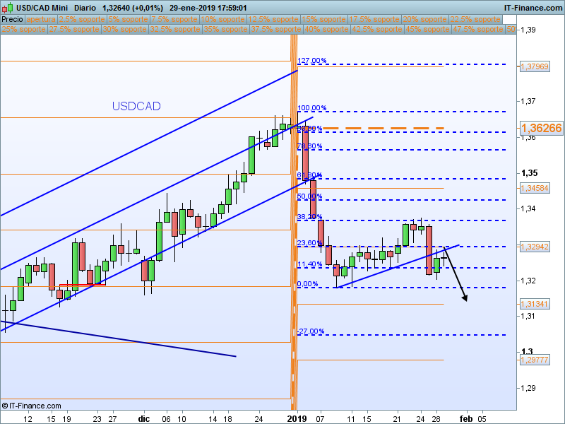 Hemos tenido rechazo en el 38,2% de retroceso, podemos esperar un test en el SOR 1.3294 y mientras se mantenga por debajo de esta cota adoptar predisposición bajista.