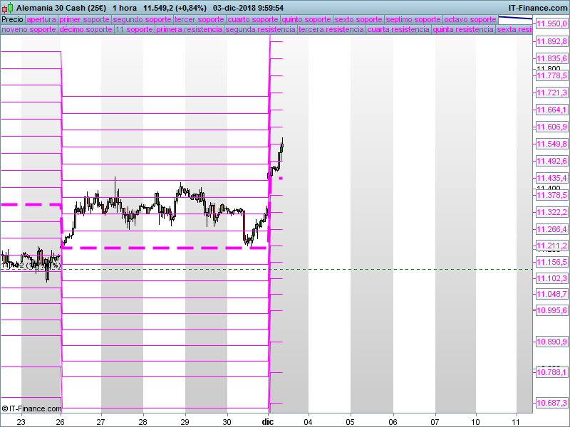 DAX.- Importante ver como el Precio de apertura semanal confluye con el importante SOR anual 11414. Nivel a tener muy en cuenta durante la semana.