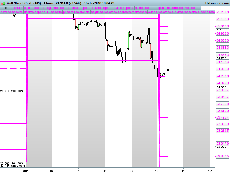 Dow Jones.- Otro índice en el que agotamos los soportes calculado para la semana. Durante el trimestre llegamos al SOR de -10%