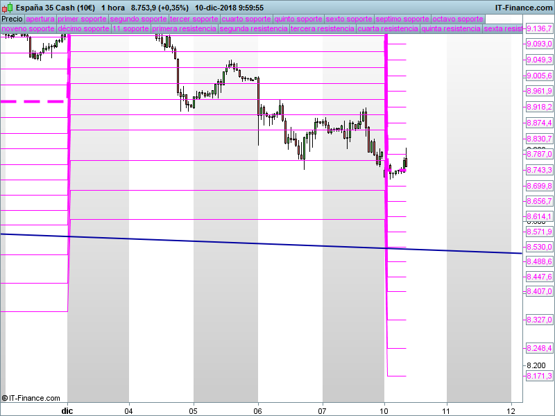 DAX.- Clavamos al milímetro el último de los soportes calculados para la semana pasada. Destacamos que la apertura con GAP bajista de esta semana coincide con el SOR trimestral que representa la caída del 15%.