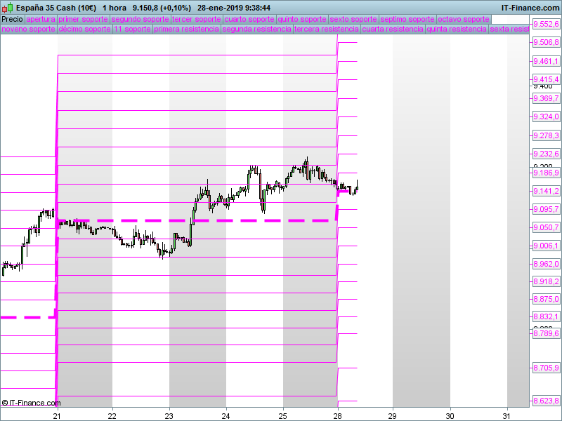SOR semanales 28/01 a 01/02/2019 Publicado por Julio Fdezel 28 enero, 2019SORs semanalesArrancamos una semana más y vamos a fijarnos en la posición de la cotización respecto al precio de apertura semanal y los SORs semanales.DAXStoxx50Ibex35sp500 Dow JonesNasdaq100 Seguir leyendoArtículo anterior Apertura de mercados 28/01/2019. Semana de FED y AppleArtículo siguiente Demostrado, los LEONES hacen lo contrario que las GACELAS.