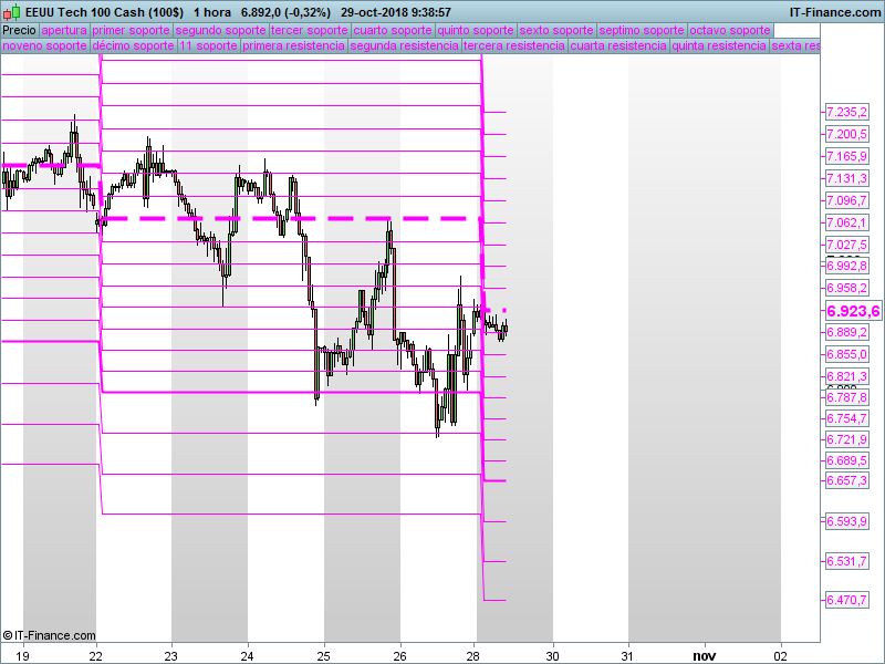 NASDAQ 100.- De nuevo el índice con mayor volatilidad semanal, superando el Soporte 4% y llegando con toque muy preciso al 5%.