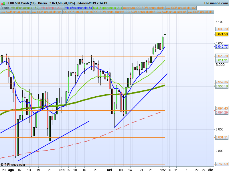 Tras ver como la pasada semana terminamos claramente al alza y cerrando en zona de máximos, hoy lunes abrimos con un pequeño hueco al alza que nos predispone alcistas con un claro objetivo en mente, el SOR anual 3083.