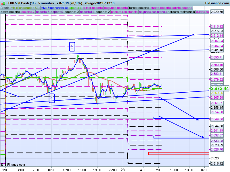 Como siempre, será el precio de apertura diario (2872) el que nos sirva como referencia para adoptar la predisposición intradiaria. Cierres por debajo de este será la llave que nos permita alcanzar la zona planteada.