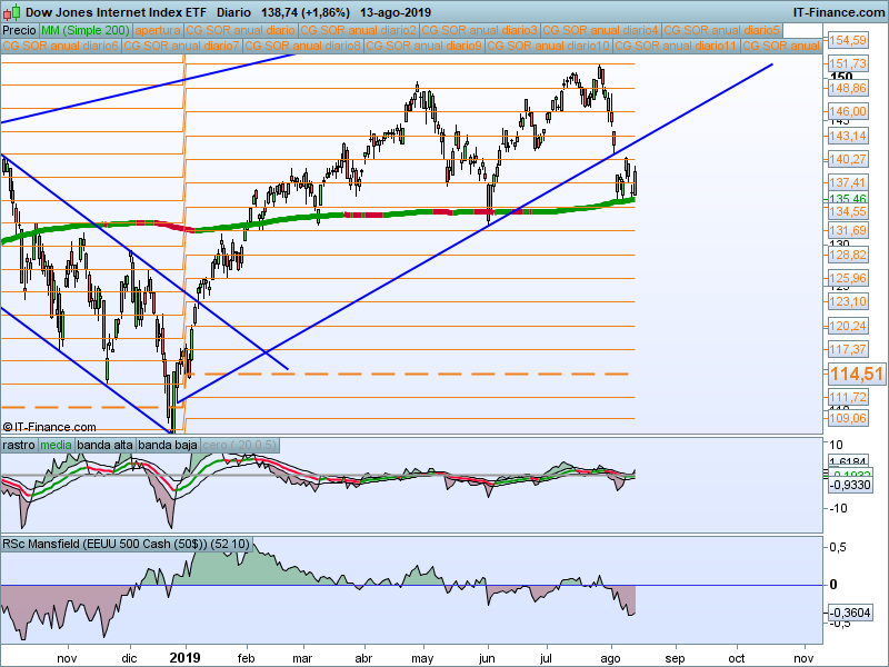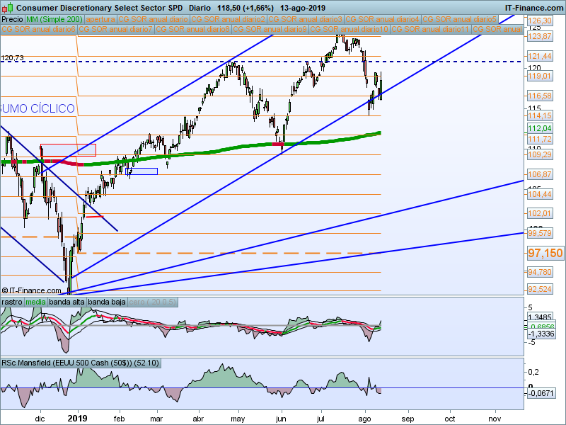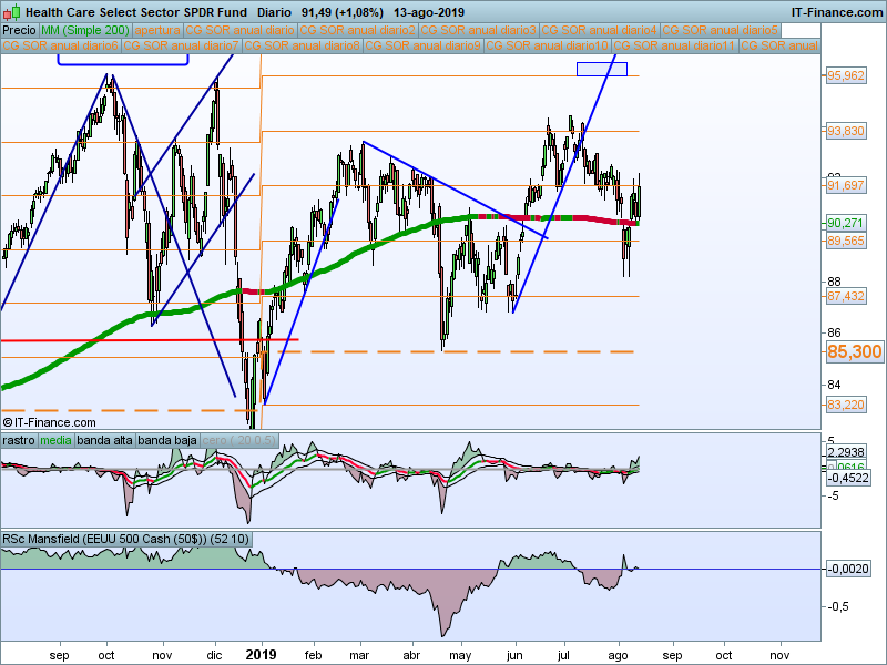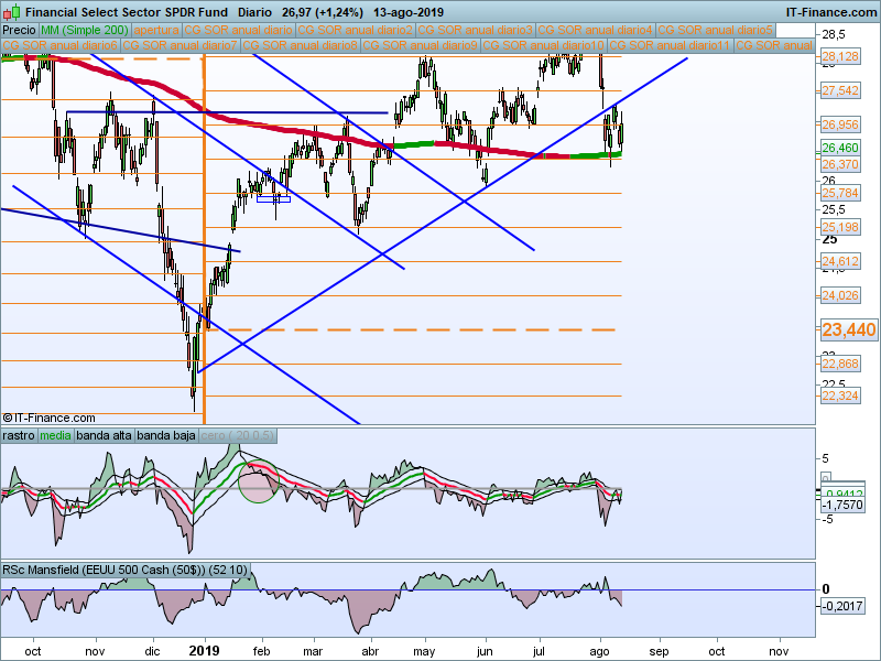 Parece que estamos reacción por encima de la media de 200 sesiones. Podríamos adoptar predisposición alcista mientras se mantenga esta circunstancia, pero aún así no es de los sectores que mejor estructura presenta.