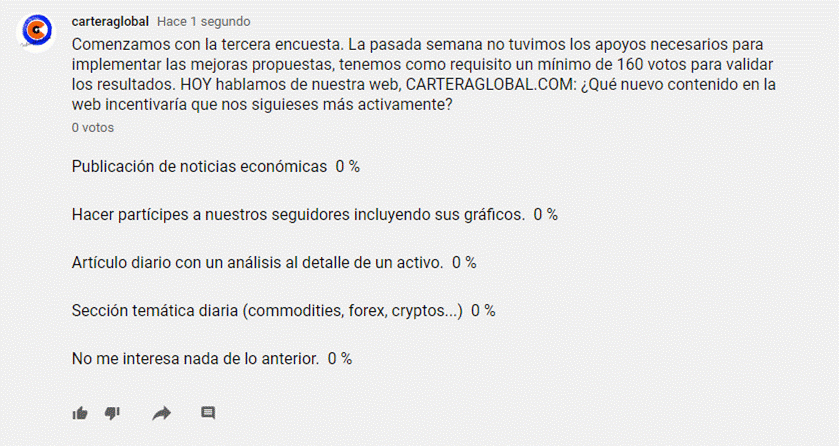 Nos faltan 10 votos. Publicado por Julio Fdezel 5 agosto, 20205 agosto, 2020Para participar, puedes hacerlo a través de nuestra comunidad de YOUTUBE, a través de este enlace.Seguir leyendoArtículo anterior TRADING LIVE 11.30. Europa a décimas de romper estructuras de corto plazo.Artículo siguiente #DAX al minuto, una hora sin movernos, nos vamos hasta las 15.00