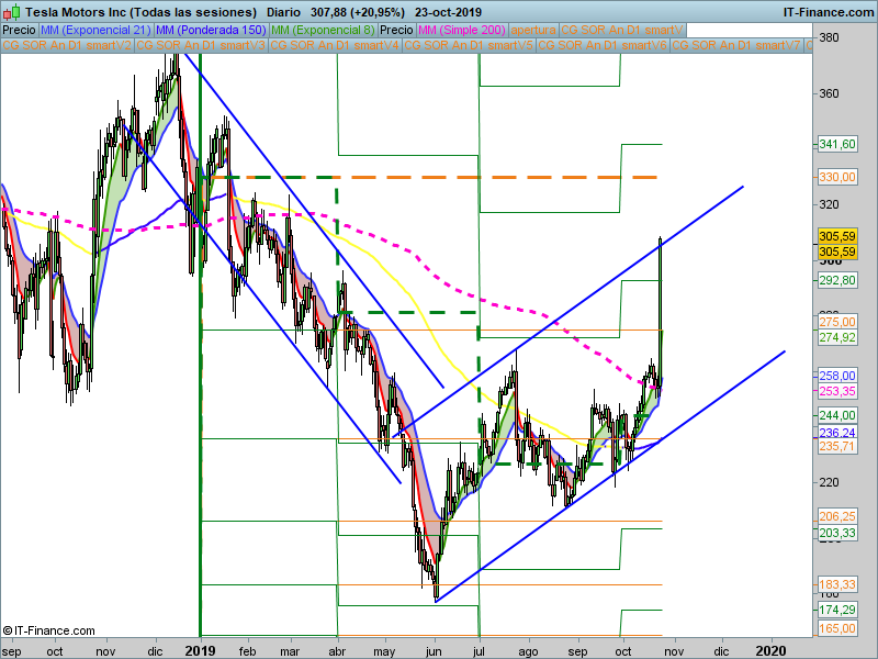 Tesla presentó en el día de ayer resultados y lo hizo tras el cierre oficial del mercado. Las sensaciones a nivel de negocio fueron agridulces con unos ingresos que se quedaron por debajo de las estimaciones pero con una sorprendente vuelta a los beneficios que cogió a más de uno desprevenido (se esperaba un BPA de -0.45 y presentó +1.86). La reacción a este último dato propició que en el fuera de horas la cotización se fuese a buscar los 300$.