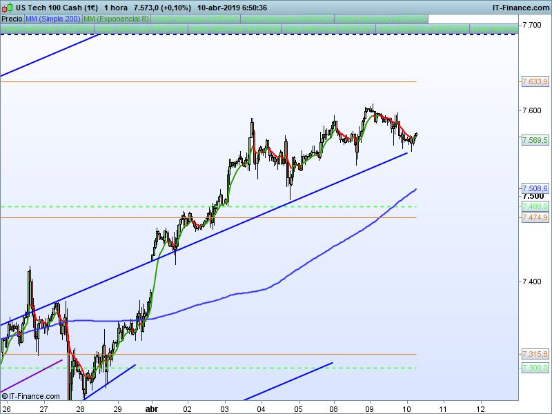 Estamos a mitad de camino entre SORs, mientras estemos por encima del 7475 vamos a mantener la predisposición alcista para alcanzar el 7633