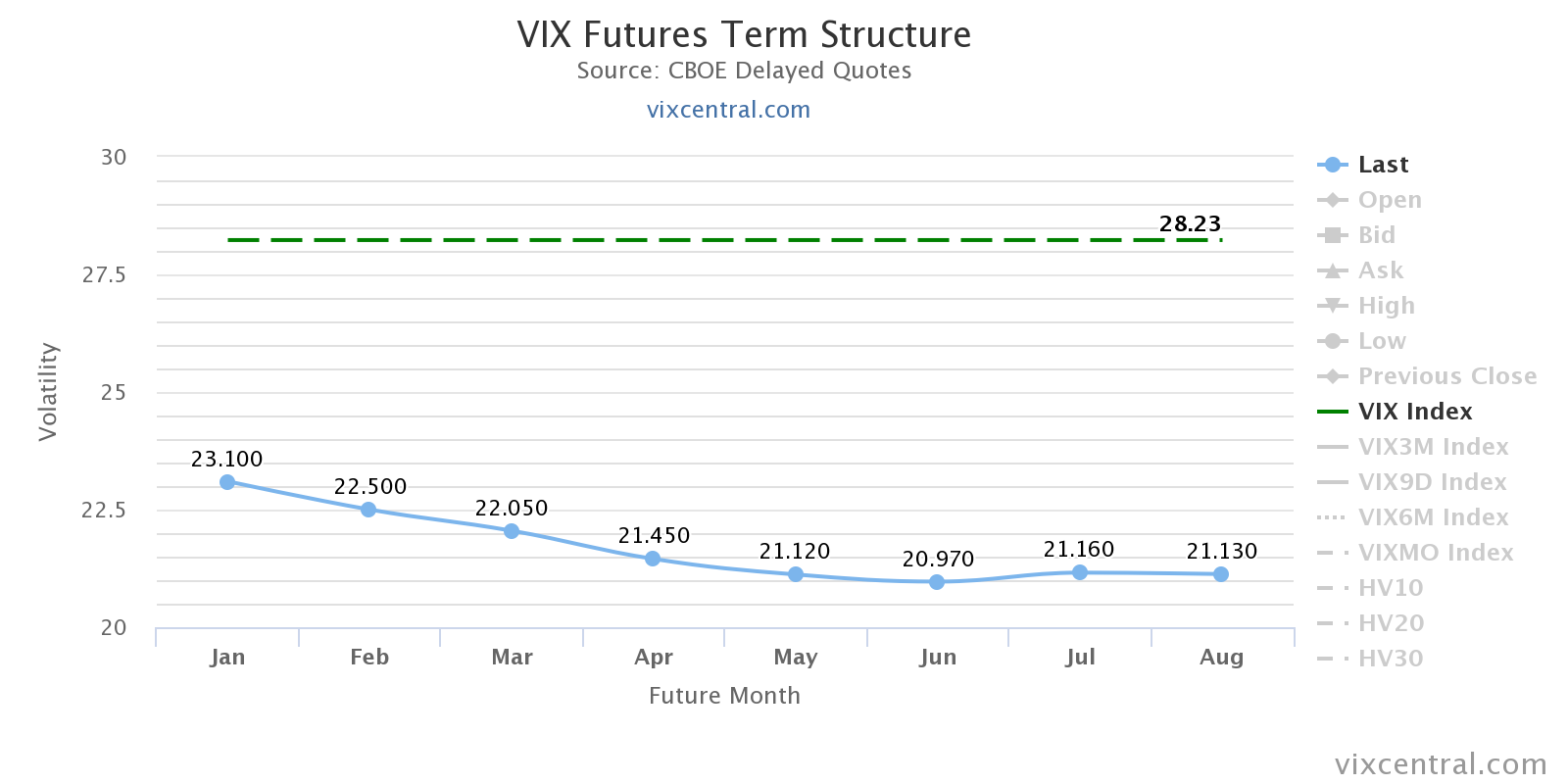 #VIX supera el 28. Publicado por Julio Fdezel 20 diciembre, 201821 diciembre, 2018A estas horas, el VIX cotiza por encima de 28, recordemos que ese es el nivel más alto alcanzado dentro de la caída de octubre. Una lectura por encima de 30 podría considerarse extrema e indicio de capitulación. Seguir leyendoArtículo anterior Gráfico para meter miedo.Artículo siguiente Apertura de mercados, 21/12/2018